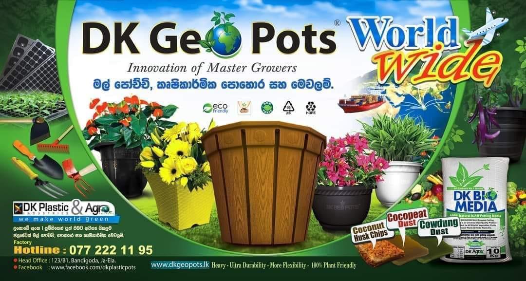 DK Plastic Industries & Agro Trading is a Sole & Trusted High Quality Agriculture Products Manufacture in Sri Lanka for Local & Export Market, Our main products are 100% Recycled Agriculture Plastic Plant Nursery Containers, Plastic Flower Pots, Grow Bags, UV Grow Bags, Seedling Trays, Quality Seeds, 100% Organic Compost / Potting Medias & all Kind of Fertilizers, Shade Nets/Greenhouse Solutions, Watering Systems, Other Agriculture Tools, Interlock Paving Molds, Garden Items & Any kind of Crop Products.